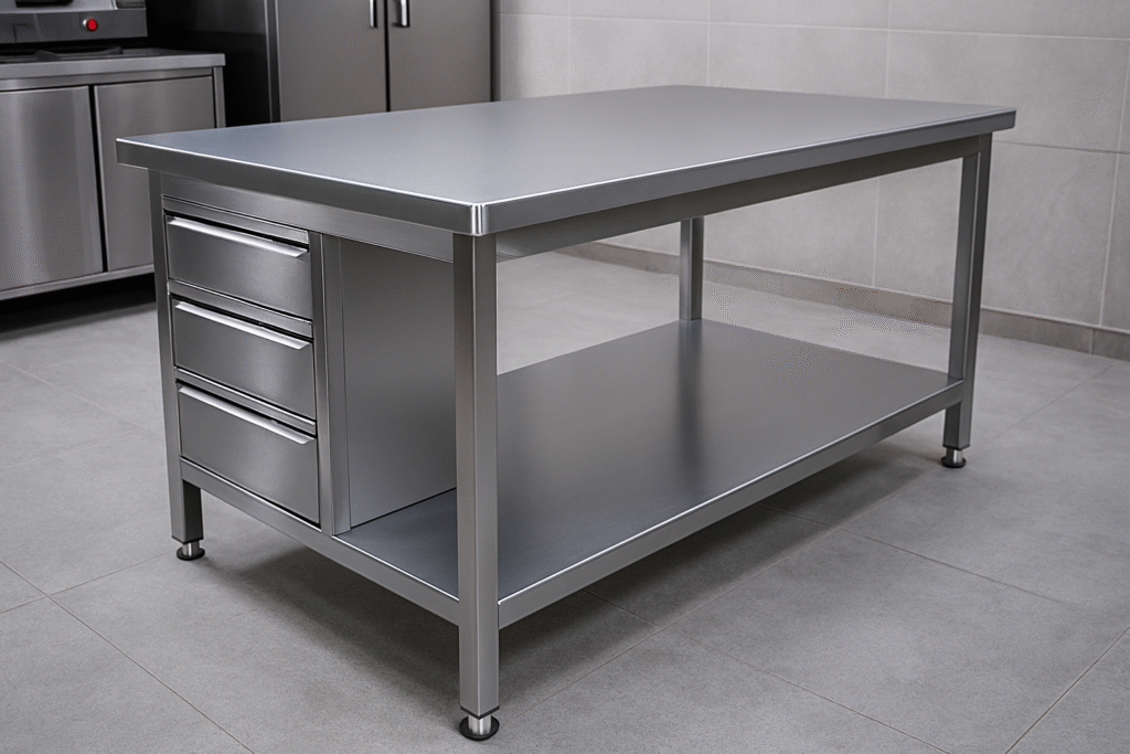 • Mobilier inox personnalisé : tables, étagères, armoires, plans de travail